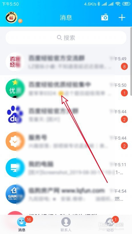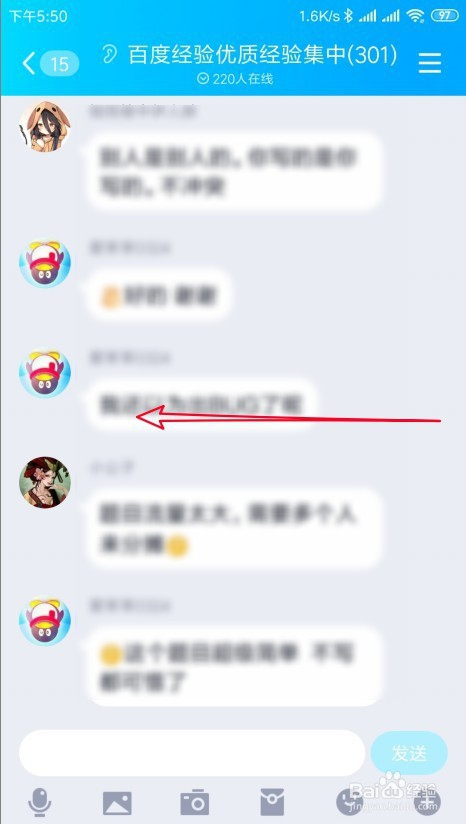 接着在打开的QQ群聊天窗口页面中,标的目的左滑动屏幕。