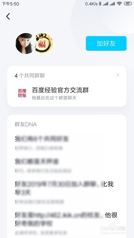再标的目的左滑动,或是点击底部的头像,会看到对应老友的QQ群老友DNA