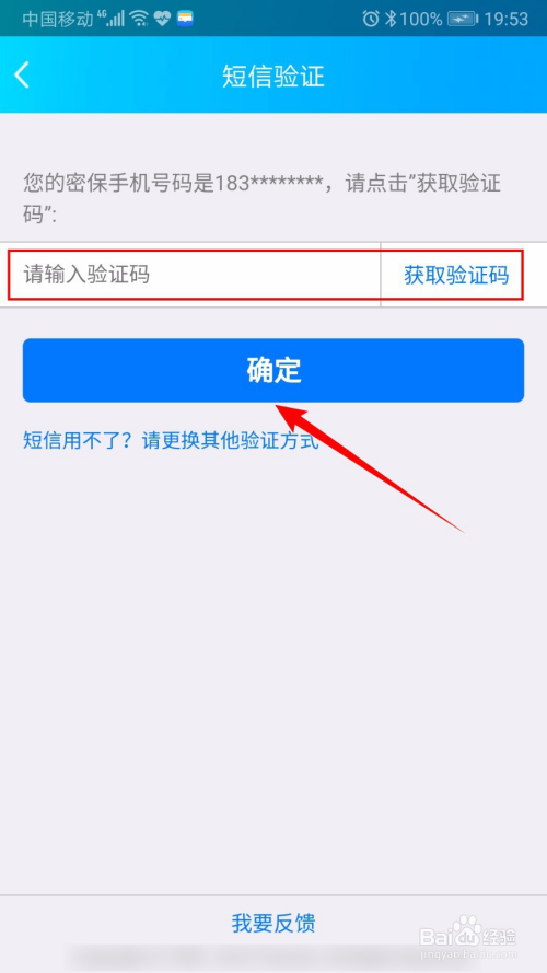 输入QQ号、邮箱或手机号,点击【确定】按钮,平安验证当作功后,进入“短信验证”页面。
