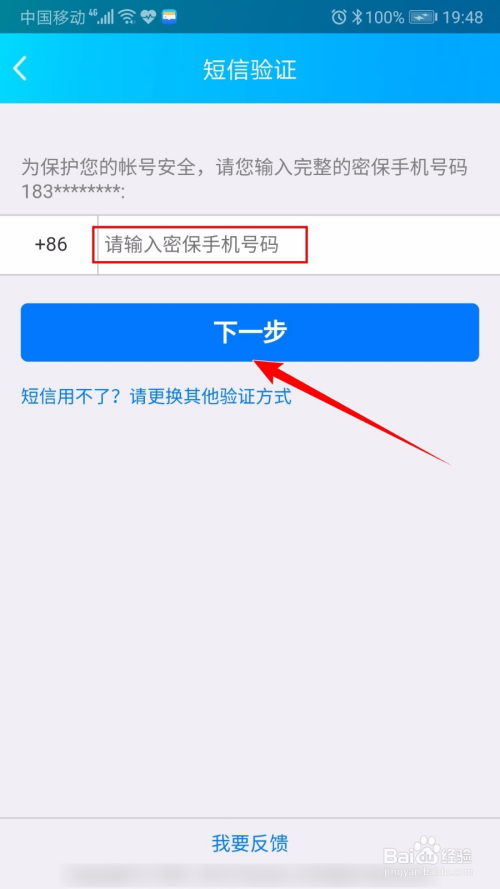 输入密保手机号,点击【下一步】按钮。