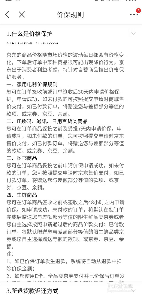 保价法则分为家电、数码、图书、生鲜,每种商品的保价时候是纷歧样,需要具体查看