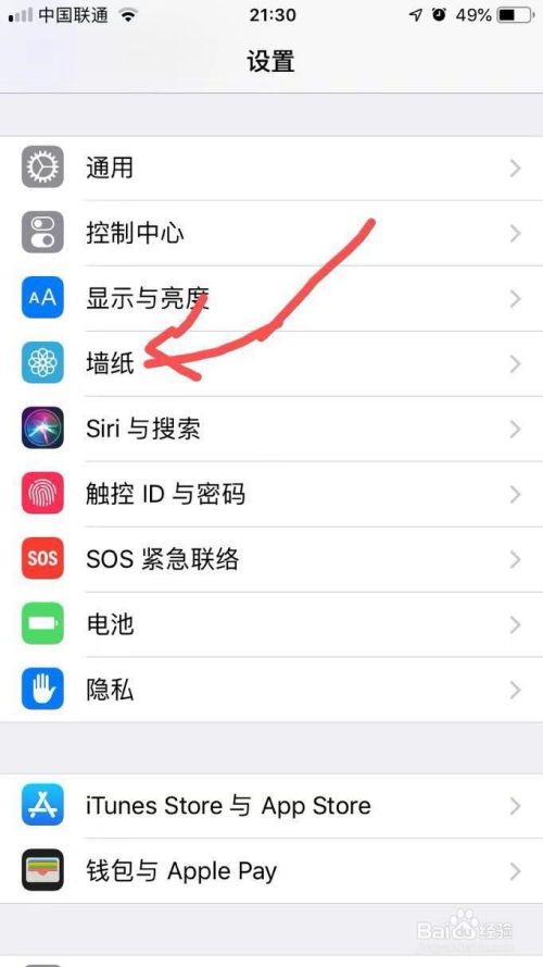 然后我们打开设置,在设置里面找到墙纸,点击墙纸就会让你拔取新的墙纸