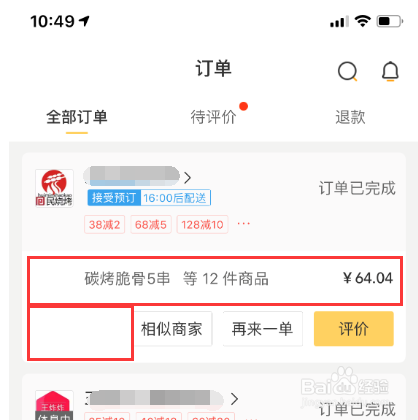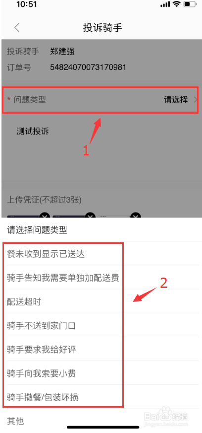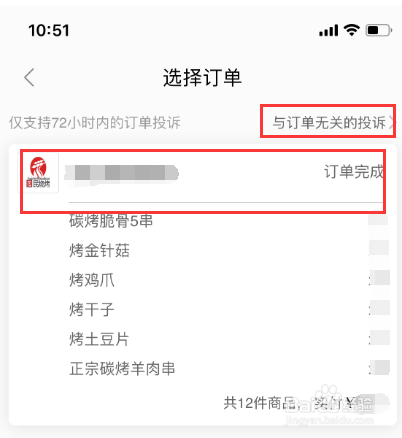在订单页面选摘要投诉的订单。注重点击红框内的区域。