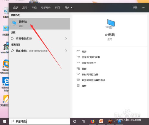 点击后在搜索框内输入我的电脑,然后在搜刮成果界面点击此电脑,如图。