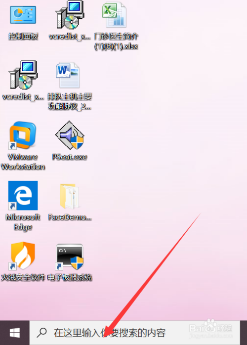 在win10电脑桌面点击左下角的搜索框,如图。