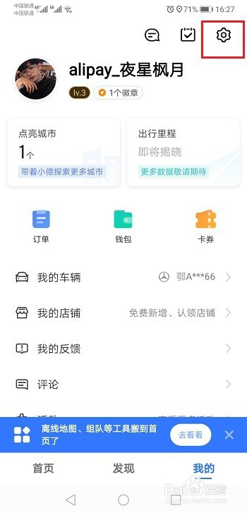 第二步进去我的界面,点击右上方设置图标,如下图所示:
