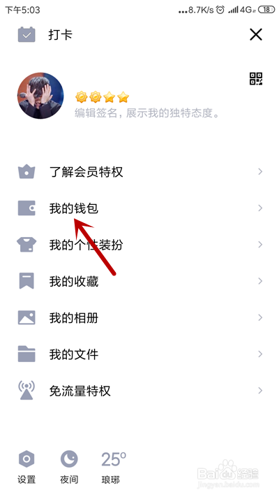 进入到QQ本家儿界面,点击左上角QQ头像。