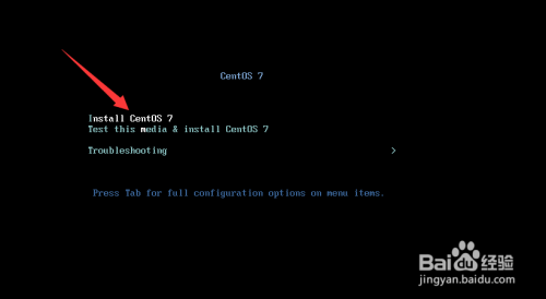 在电脑上启动centos安装光盘,在安装界面选择“install centos 7”,如图。