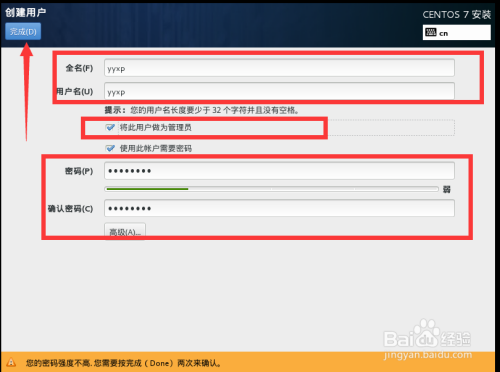 在root密码设置界面输入设置密码,然后点击完当作,如图。