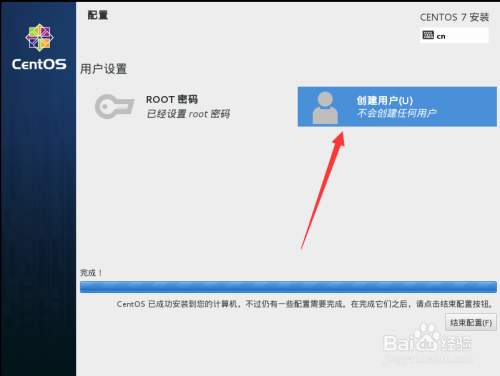 root密码设置完当作后返回设置装备摆设界面,在该界面点击建立用户,如图。