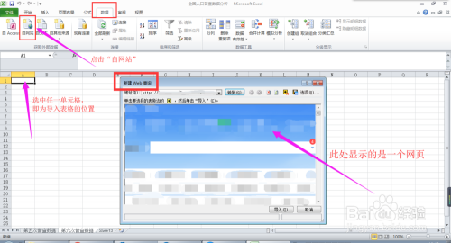 然后点击【数据】选项卡下【获取外部数据】功能组中的【自网站】按钮,弹出【新建Web查询】对话框。