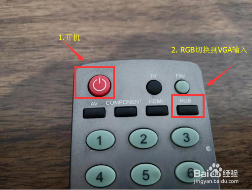 经由过程电视机遥控器开启电视机,再点击RGB按钮切换电视机输入来历。