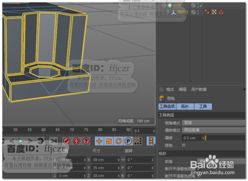 用轮回切割东西对立方体横标的目的添加轮回边距离74.3%处,纵标的目的添加三组轮回边,此中一组处于立方体的中心位置,别的二组处于立方体长度76的14.5%处。如图所示。