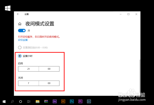 在夜间模式设置中,可以连系现实需要设置夜间模式的具体开启和封闭时候。