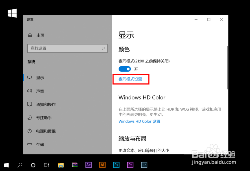 良多时辰我们会在晚间来利用电脑,但电脑显示屏在夜间会发出蓝光影响我们的目力和睡眠。光荣的是新版的Windows10系统新增了夜间模式,可以削减屏幕蓝光,那该如何开启夜间模式设置呢,下面具体介绍。笔记本和台式电脑操作方式一样。