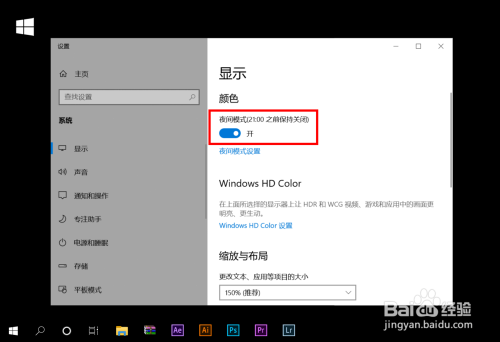 打开显示设置后,在右侧的显示设置窗口先将夜间模式功能开启。