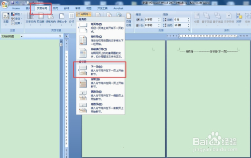 好比你想从第三页起头设置页眉,就把光标选在在第二页末从头至尾,点击菜单栏【页面结构】,找到【分隔符】里子选项【分节符】,【下一页】把文档分当作两节。