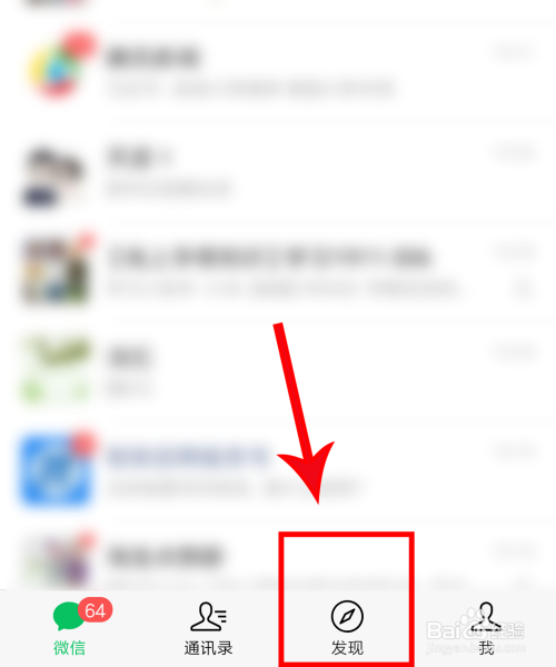 打开微信,点击发现,如下图所示。