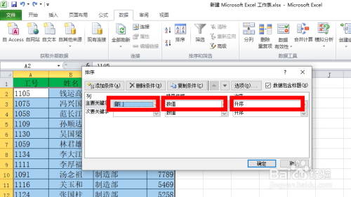在本家儿要关头字前提行别离选择“部分”、“数值”、“升序”。