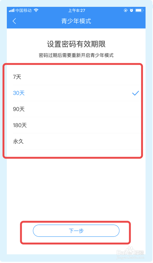 在接下来的界面,选择设置密码有用刻日,然后点击下一步,如下所示: