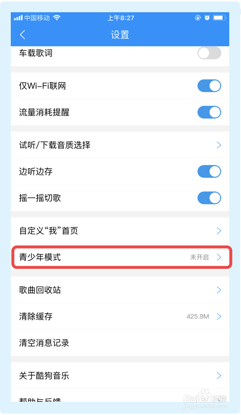 2.设置-青少年模式-开启少年模式-选择密码有用期-设置密码,完当作以上步调即可开启酷狗音乐青少年模式。