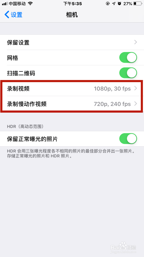 然后将录制视频和录制慢动作视频进行调整为下列参数