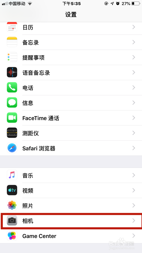接着下拉设置列表,然后找到【相机】