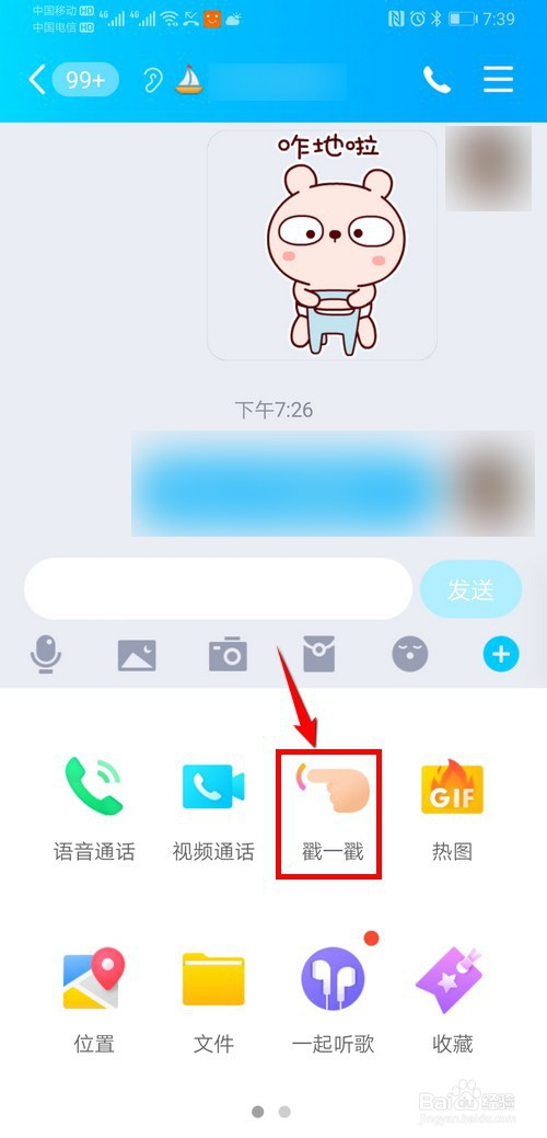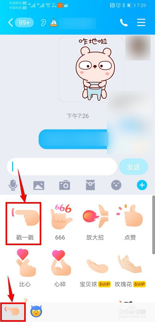 页面弹出各类头像,先点击左下角的手指图标,再点击上方戳一戳;