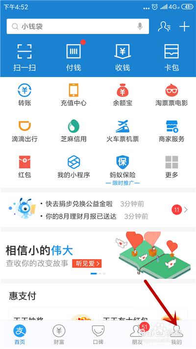 进入小我中间,点击【余额宝】应用。