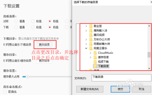 然后右侧可以设置下载的音质、下载目次、缓存目次、缓存最大占用。