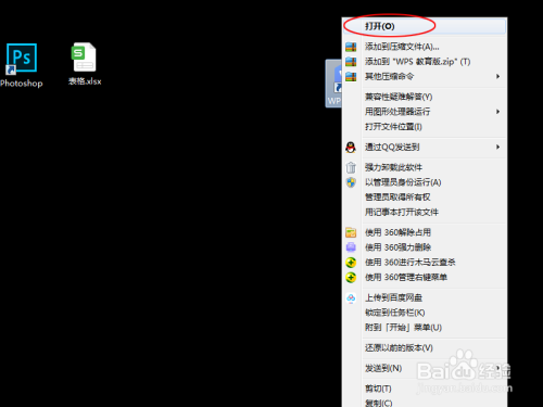 首先我们需要打开电脑,打开已经下载好的wps。右击wps图标,单击打开。