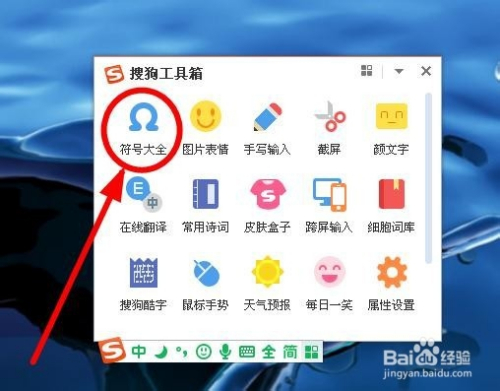 打开搜狗东西箱,找到“符号大全”单击