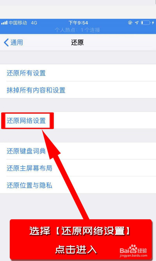 打开【通用】之后,点击【还原】;