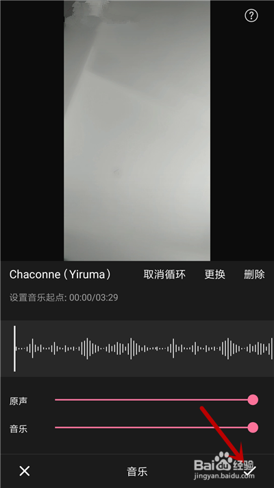 添加完音乐,调整音量,点击【√】选项。
