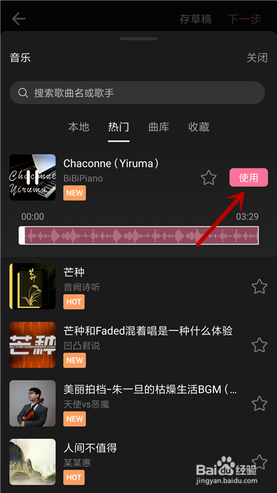 进入乐库中,选择音乐,点击【利用】。
