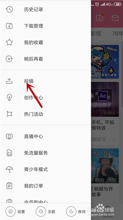 在更多界面,点击【投稿】功能。