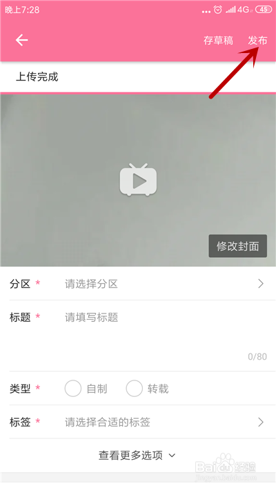 上传完当作视频,点击【发布】选项即可。