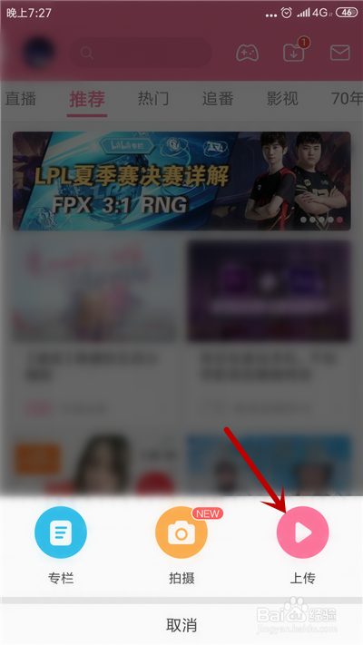 接着,选择投稿的体例为【上传】。