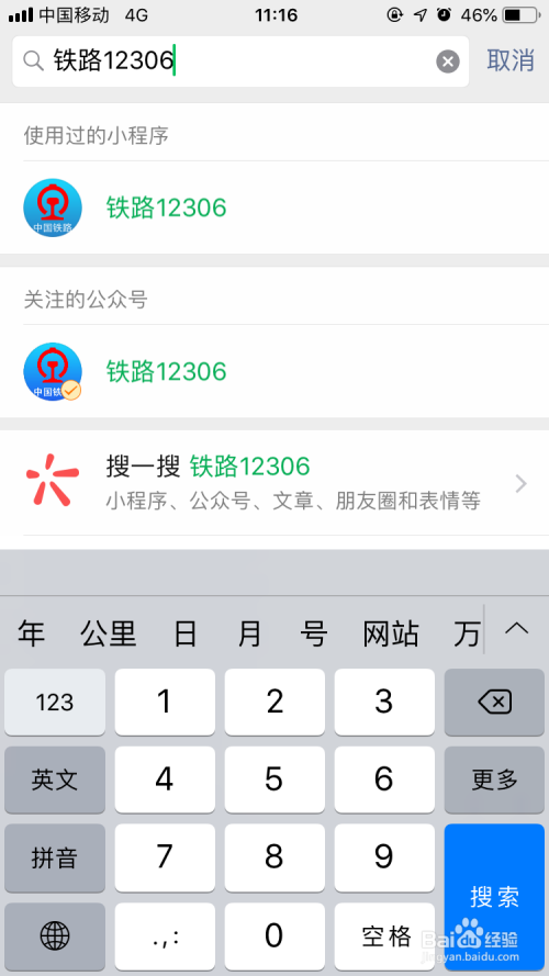 3.搜小程序铁路12306