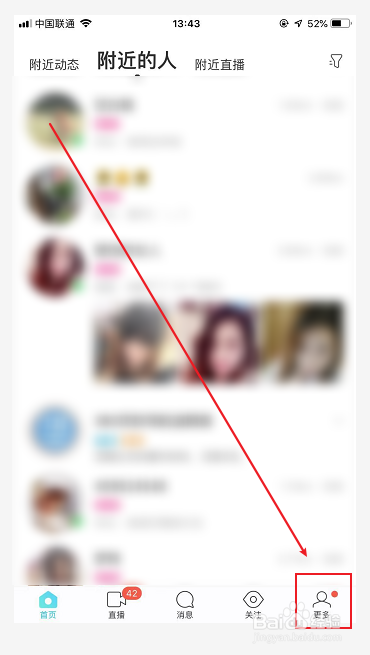 打开陌陌后点击底部菜单栏中的【更多】