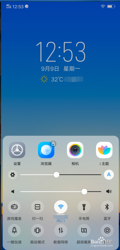 打开手机,在本家儿界面上拉会显示快捷选项。