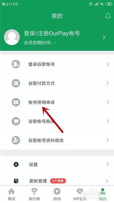 进入谷歌空间后,点击【账号停用申诉】选项。