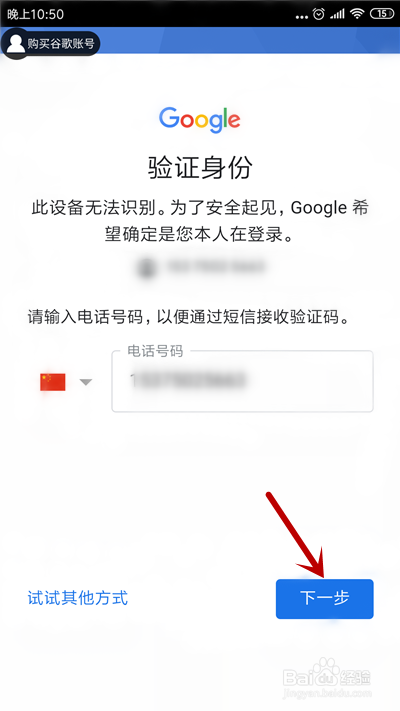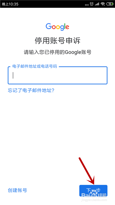 进入后,输入已停用的谷歌账号,点击【下一步】。