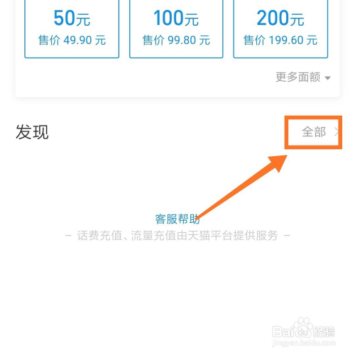 下拉充值页面,点击发现一行的后面全数,点击进入全数充值。