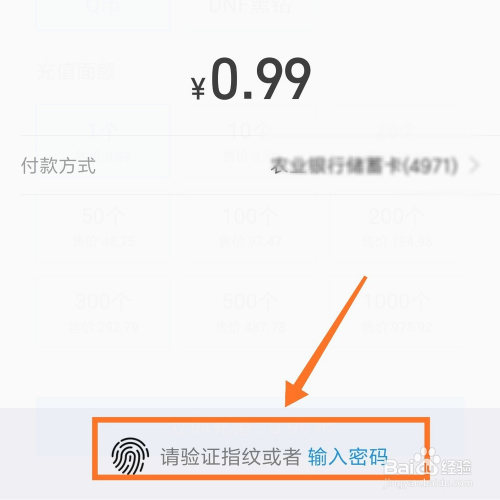 最后弹出确定支付页面,我们选择指纹验证或输入密码即可充值当作功。