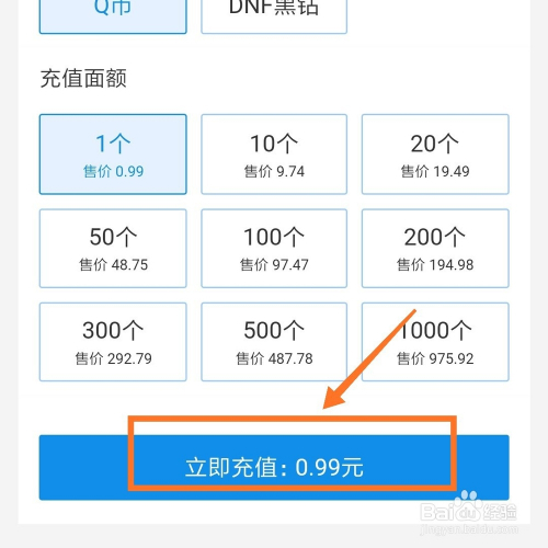 在精选功能中,我们点击最后一行第三个Q币充值,进入此页面。