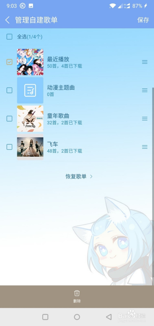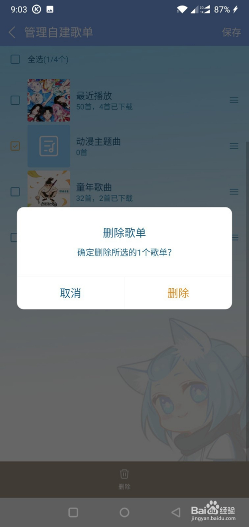 酷狗音乐如何删除自建歌单
