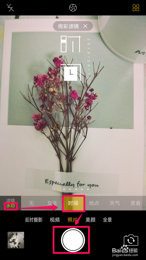 选中【水印】,点击【时候】,按下【摄影键】: