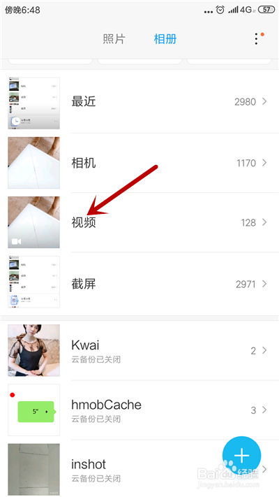 进入相册界面后,点击【视频】选项。