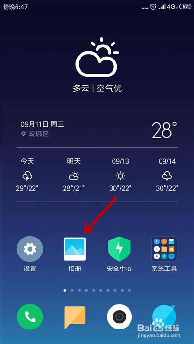 解锁手机,进入桌面,打开【相册】功能。